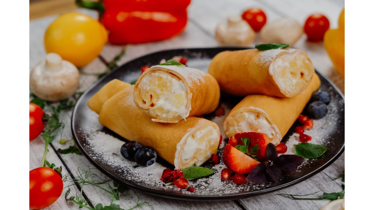 Блин,ананас,маскарпоне,сливки.