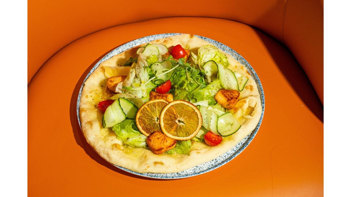 Теплый салат с семгой на фокачче