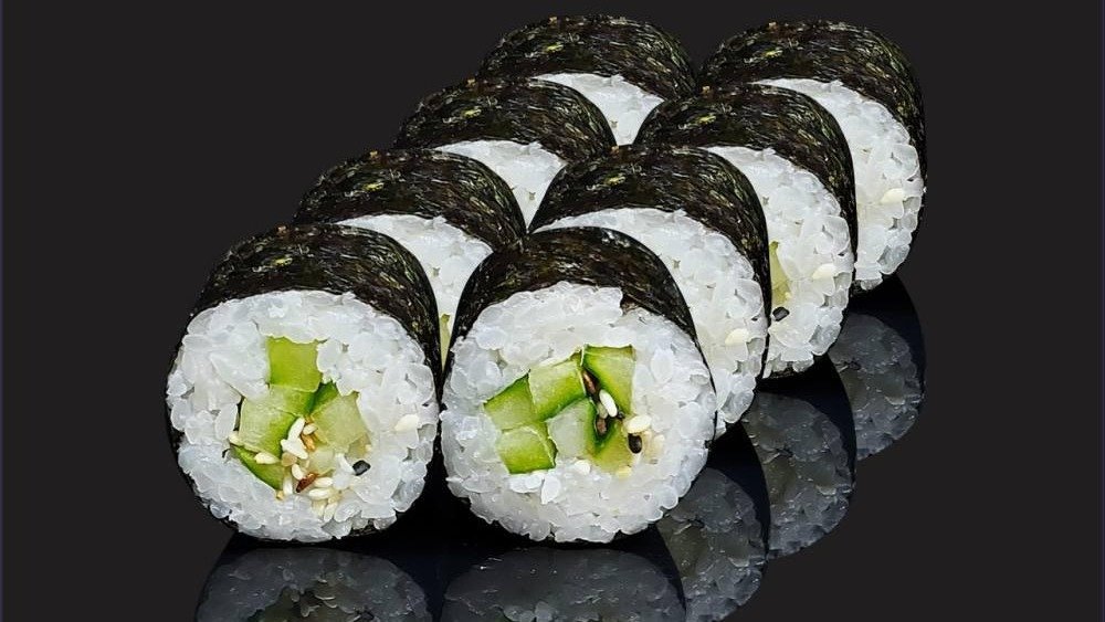 Поцелуй гейши, Вулкан, Обжорик ролл, Мацури ролл, Сяке темпура, Ролл с лососем, Ролл с огурцом. 56шт.