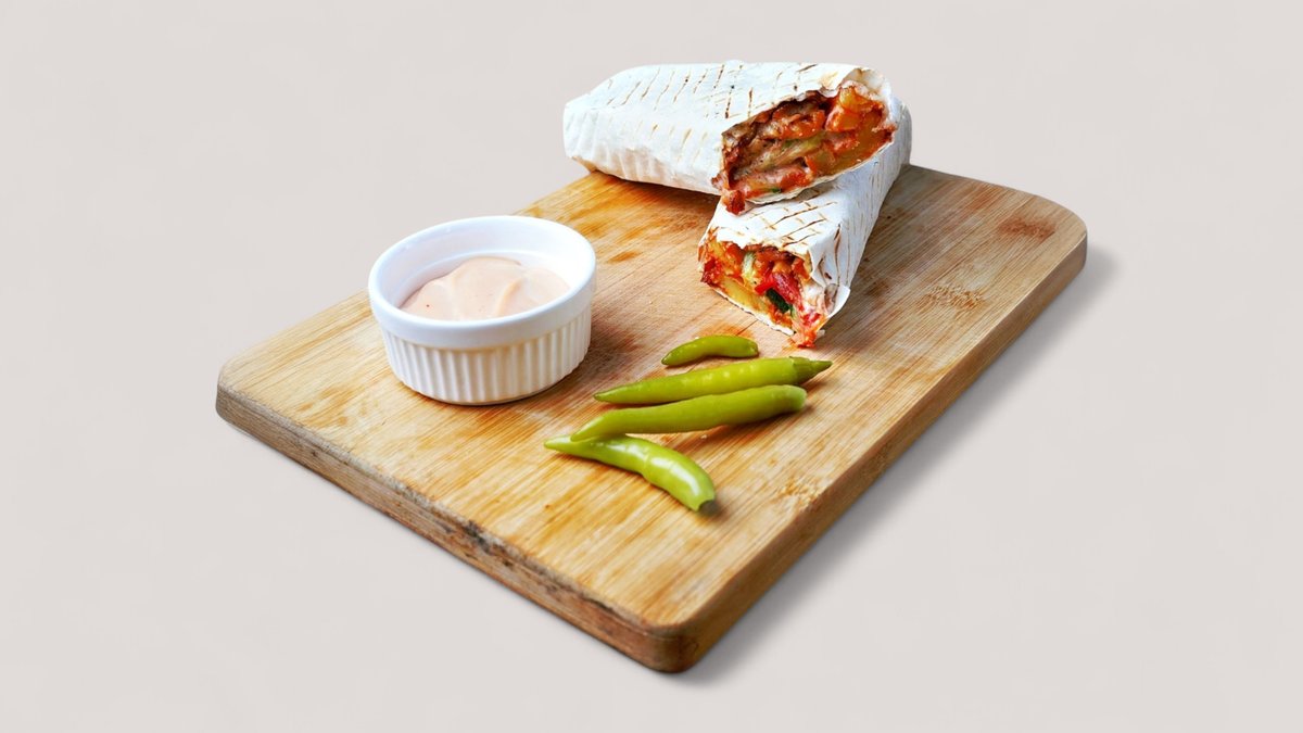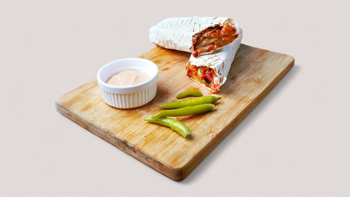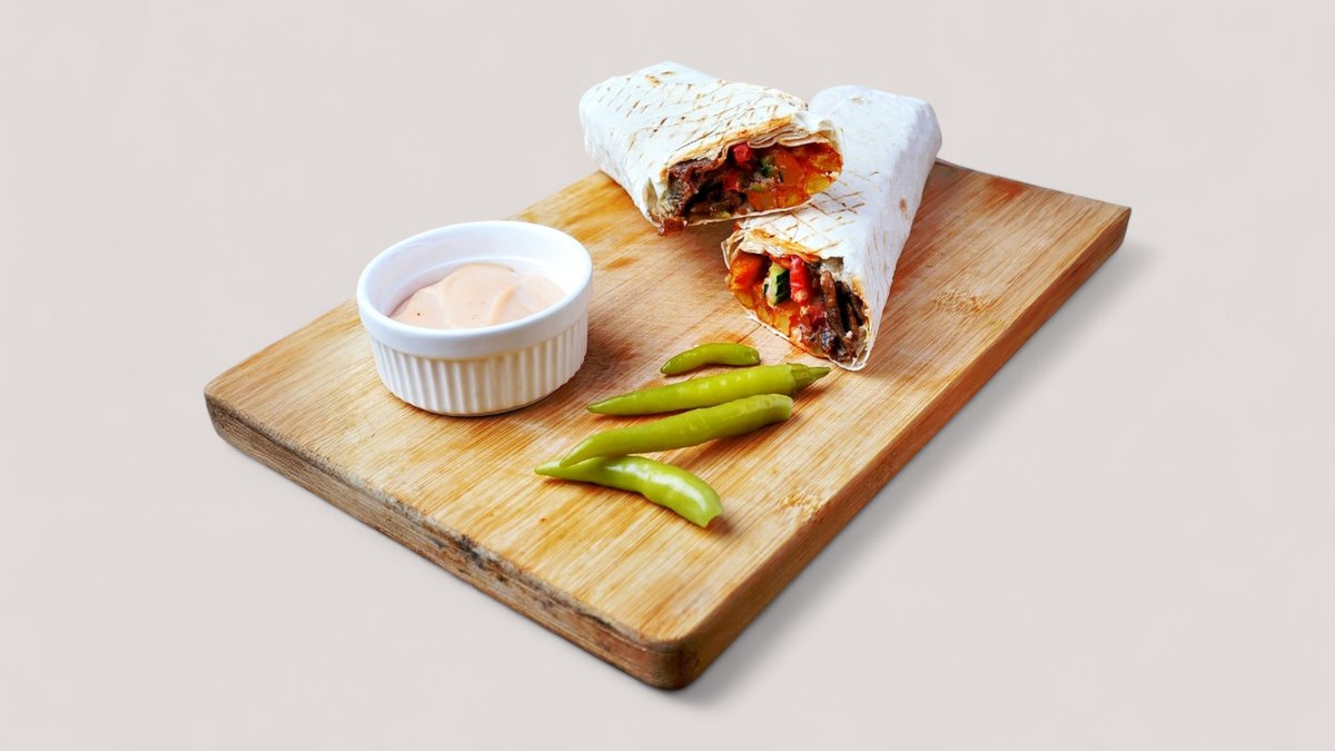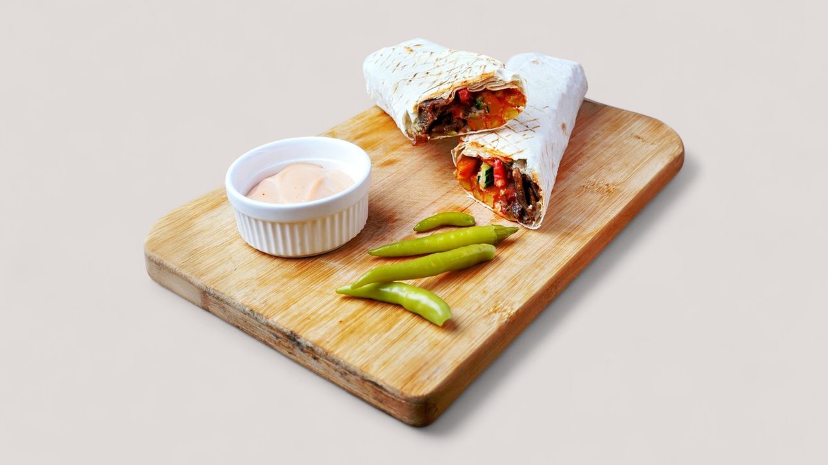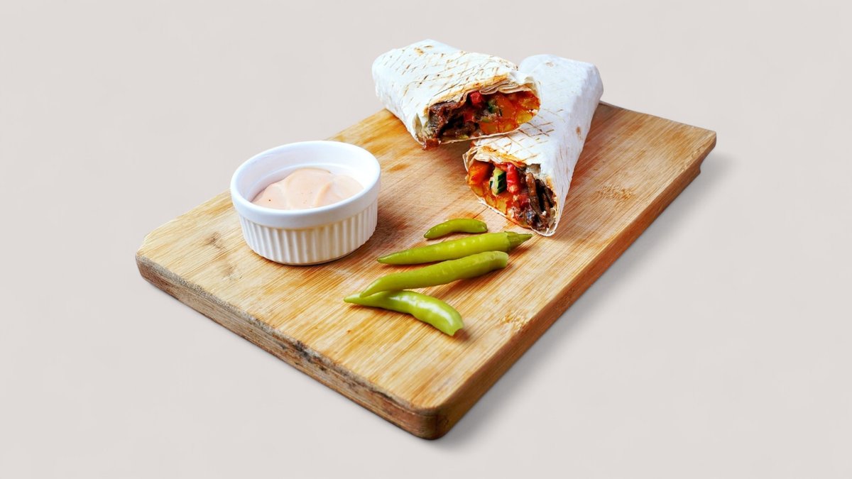 Донер в лаваше запеченный ассорти с кунжутным йогуртом