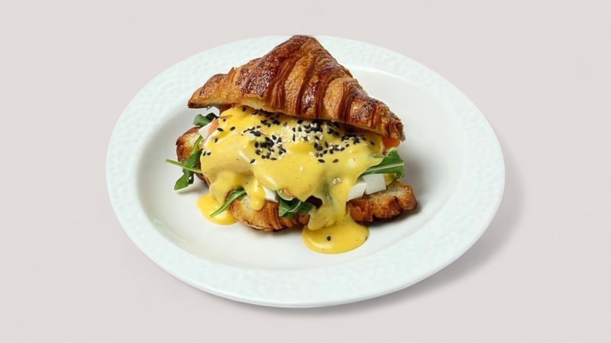 Круассан с лососем и сыром Фета