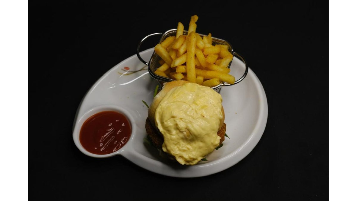 Огурцы, куриный рулет, помидор, майонез, сухари