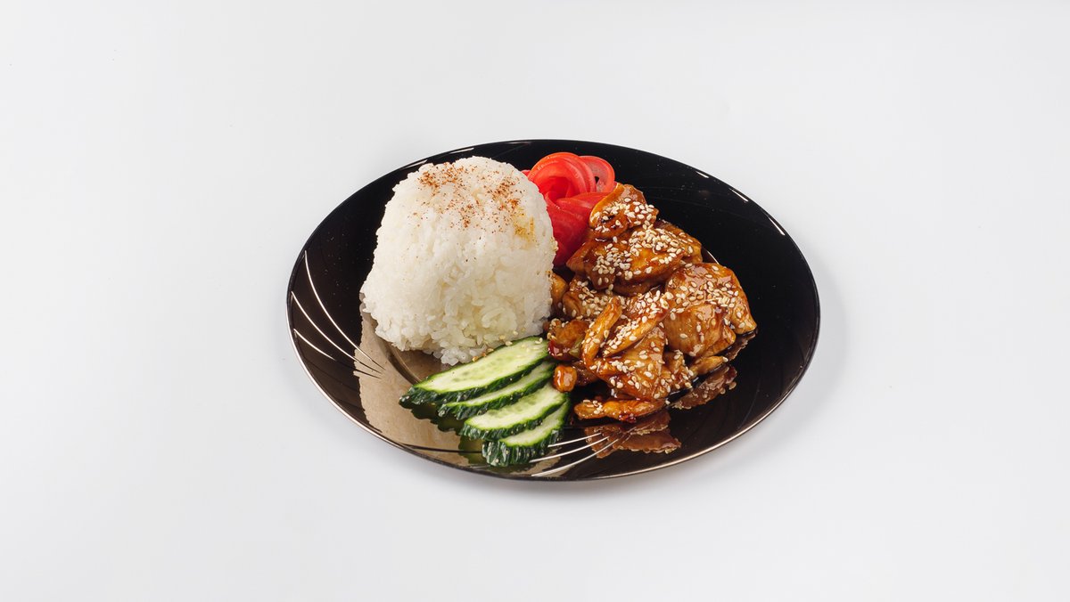 Филе курицы в кисло сладком соусе и рис