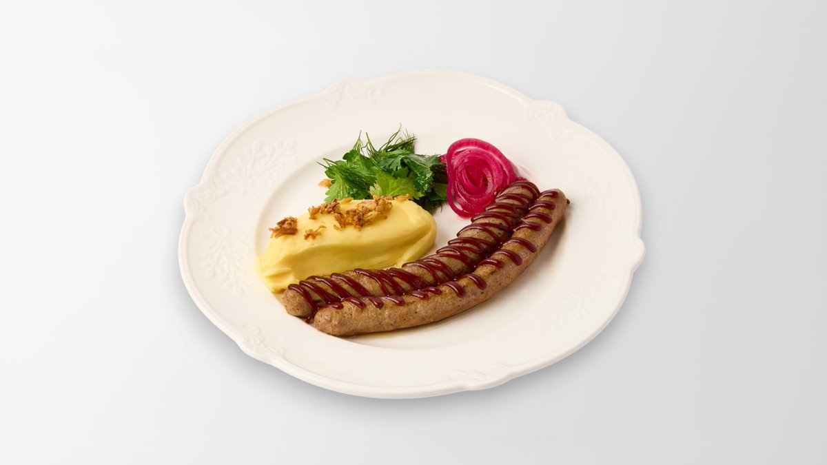 Омлет с грибным соусом и куриный колбаской