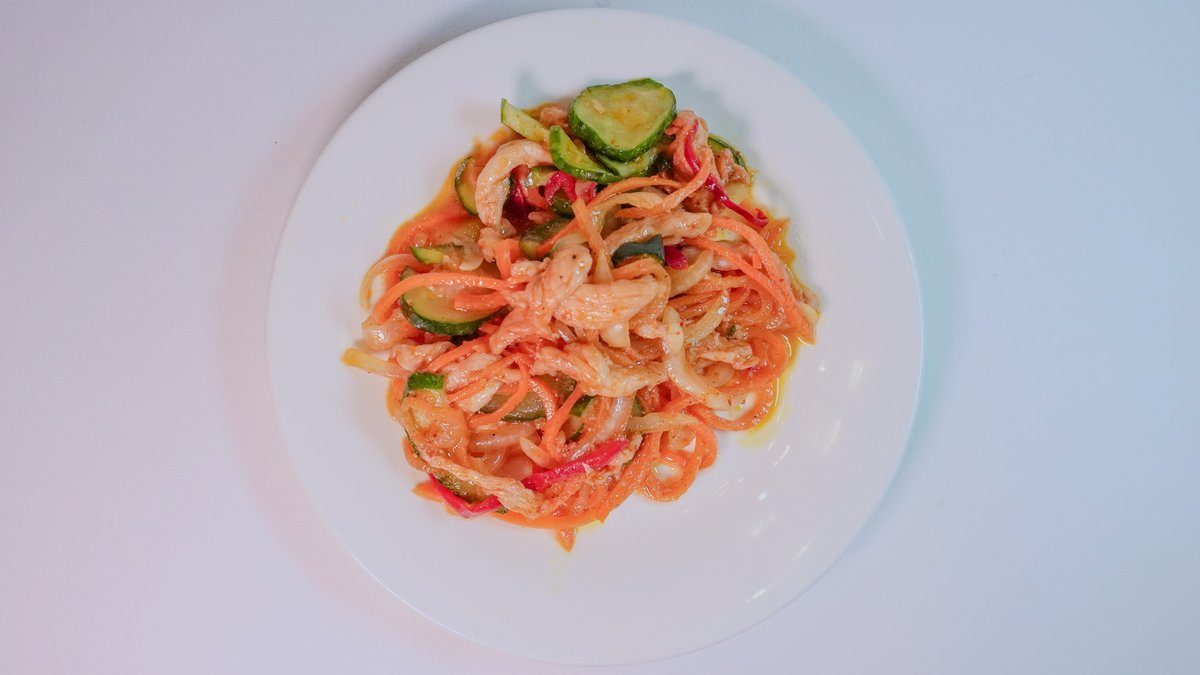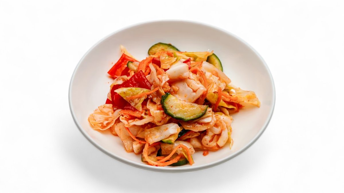 белокочанная капуста, болгарский перец, огурцы и морковь с традиционной корейской заправкой