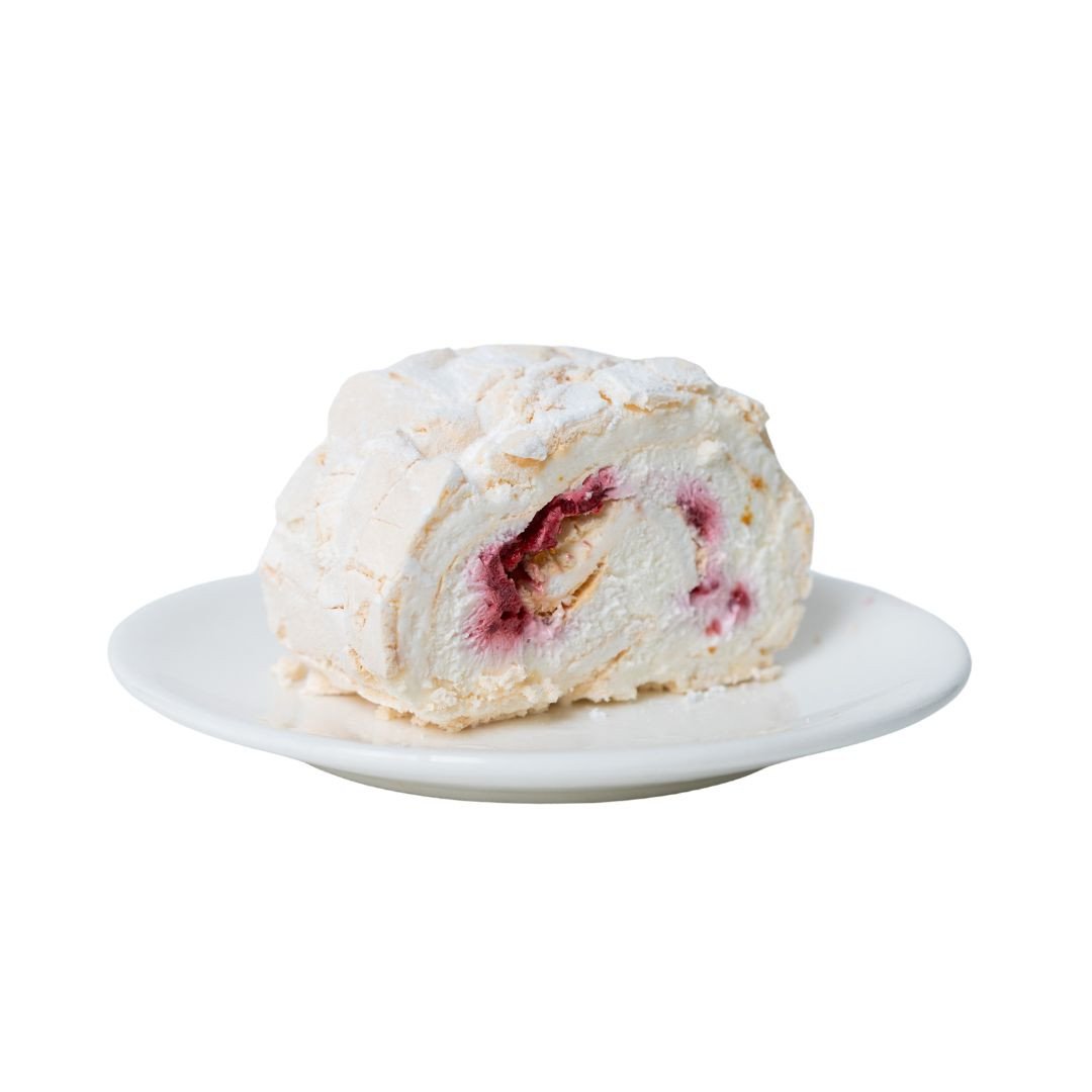 малина с кремом Пломбир в рулете из нежной меренги