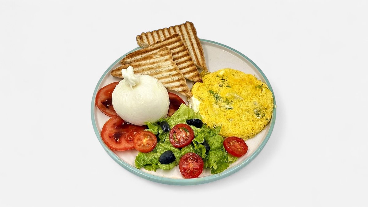 буратта, хлеб, помидор, яйцо, микс салата