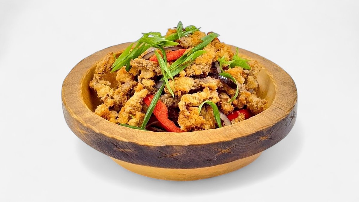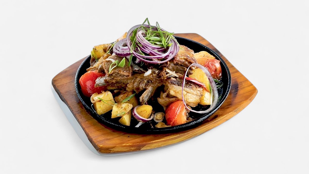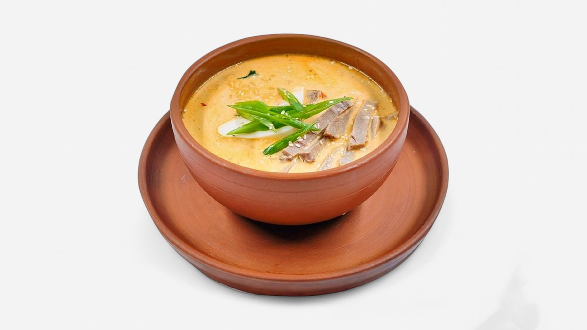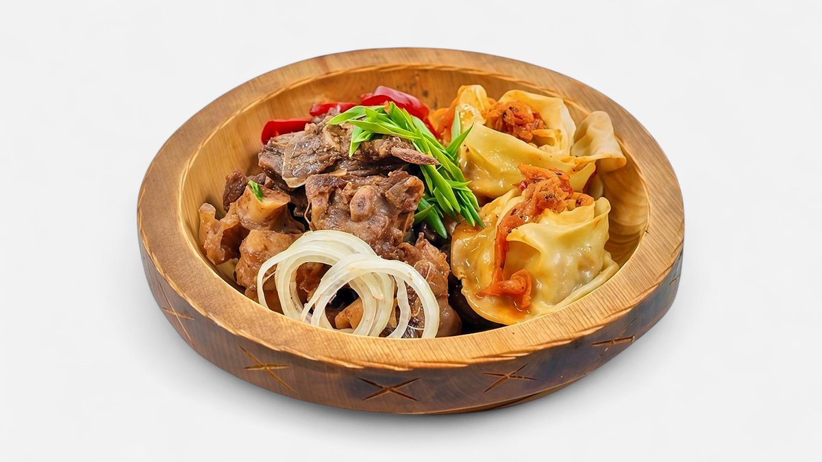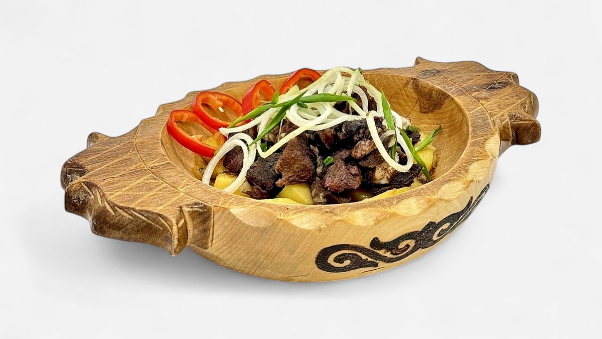 Нан бауырдак из говяжьего мяса, бульон, фри, вареный курт, перчик, соус