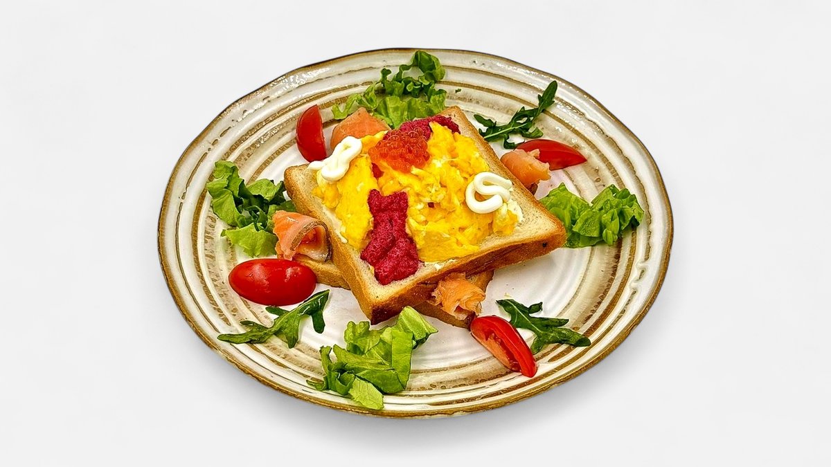 лосось, хлеб, яйца, творожный сыр, красная икра, свекла, зелень