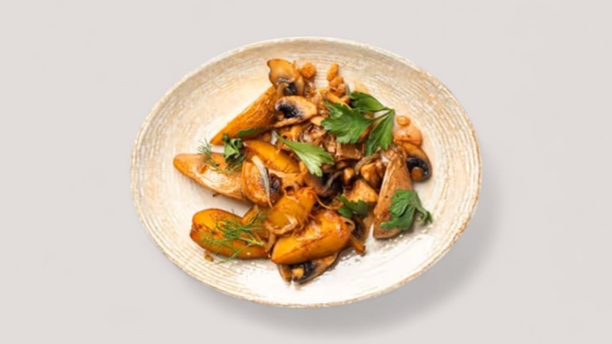 Жареный картофель на шкварках с грибами