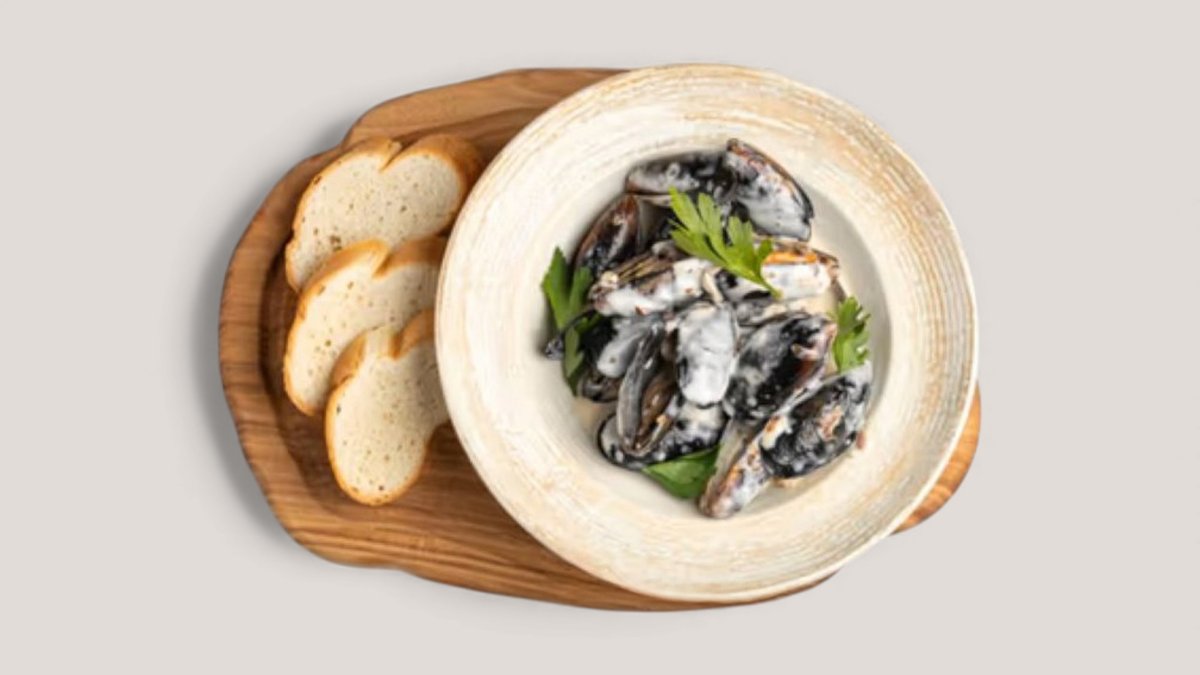 Мидии по-одесский в сливочном соусе с добавлением белого вина