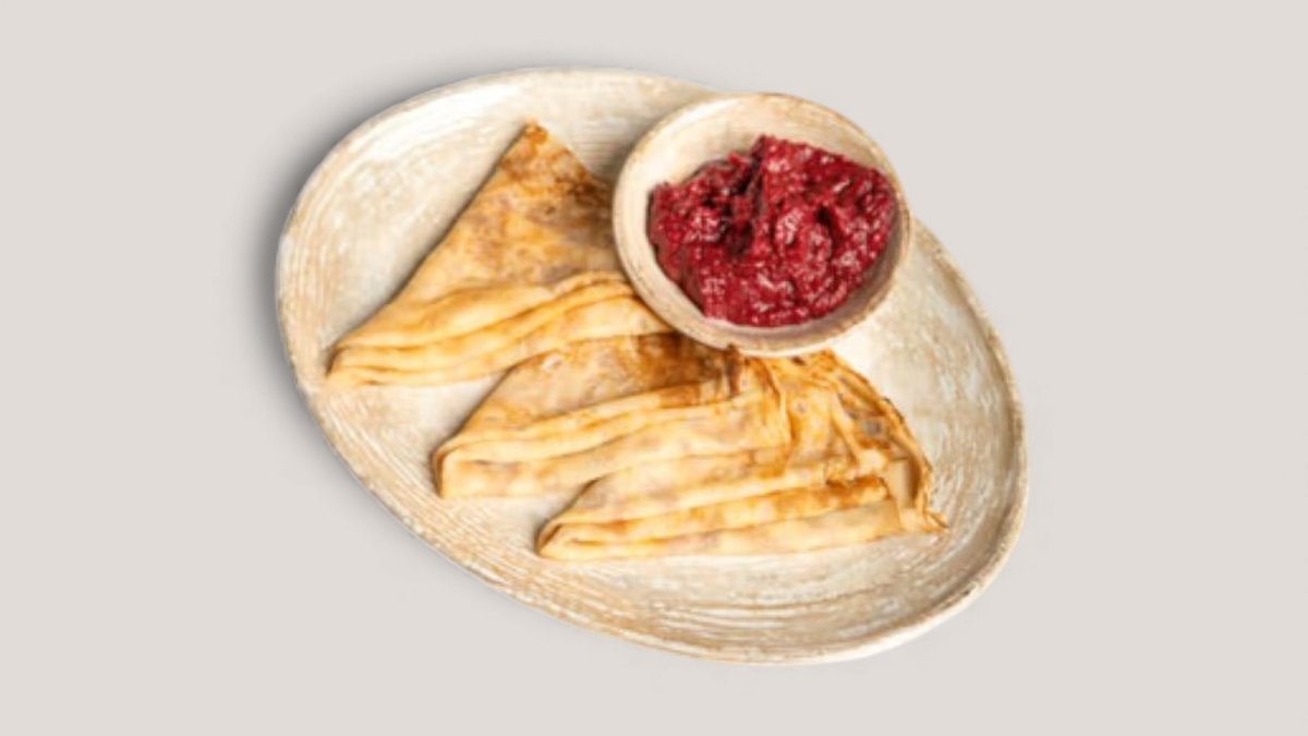 Три блина, вишневое повидло собственного приготовления