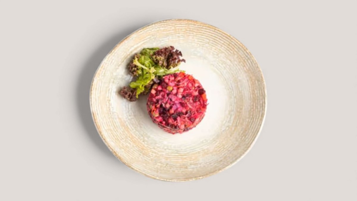 Салат Розовые облака со свеклой, сырным муссом и запеченной уткой