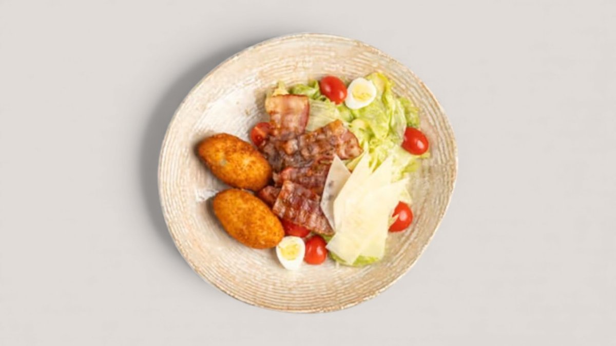мини котлеты по-киевски 2шт бекон черри перепилиное яйцо айсберг пармезан хреновый соус