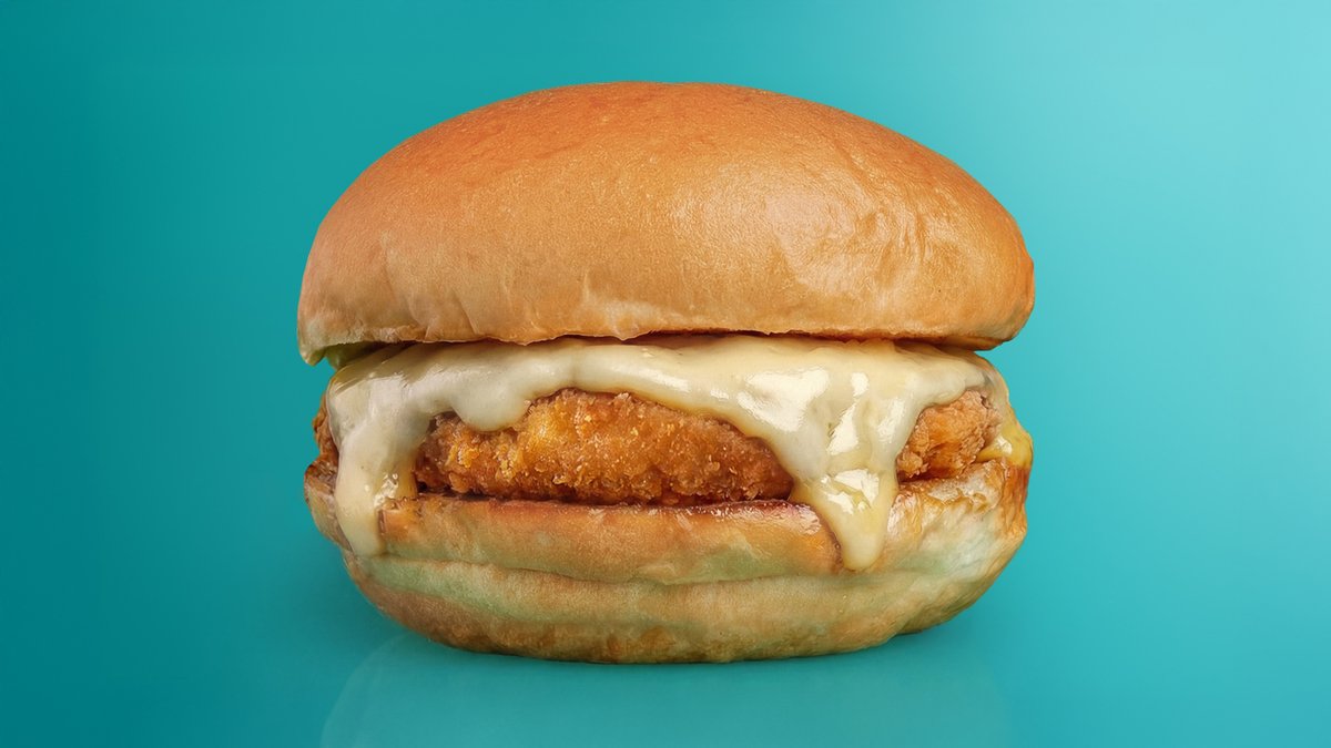 Бургер с куриным филе, соусом айоли с добавлением каперсов и сливочным сыром, незабываемое наслаждение