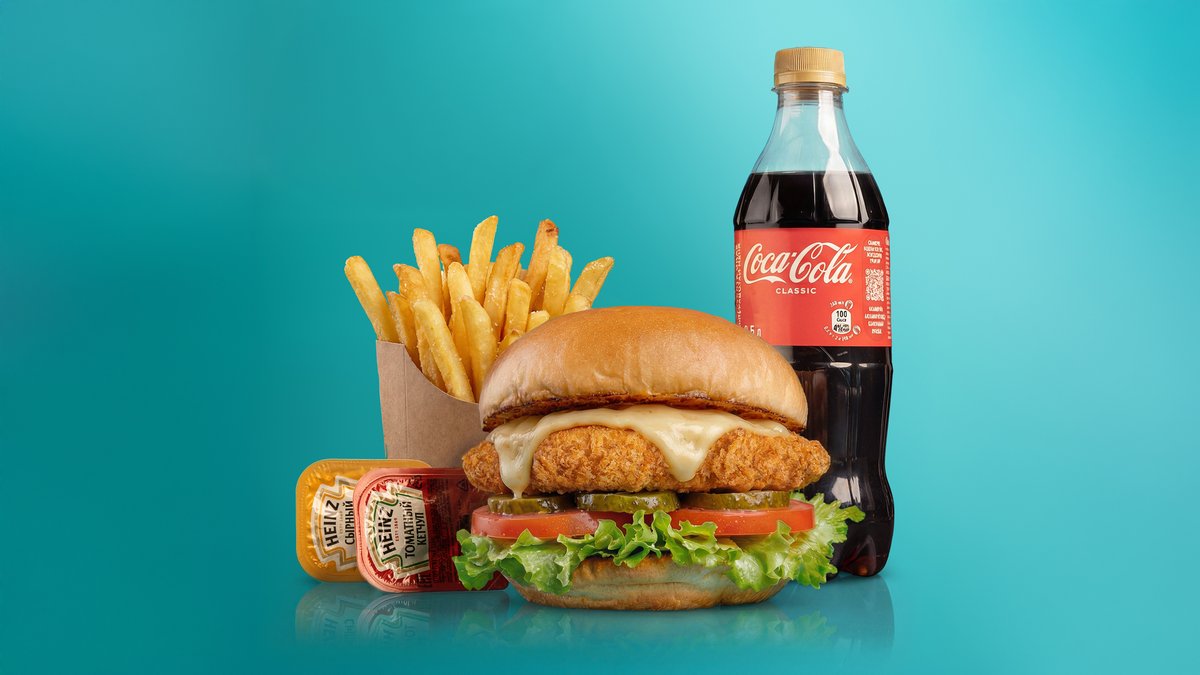 Куриный бургер + фри + напиток на выбор (кола, фанта, спрайт)