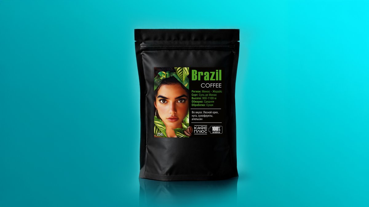 Регион: Минас-Жерайс, сорт: Суль де Минас, высота: 900-1100 м, обжарка: средняя, обработка: сухая