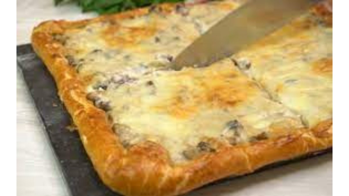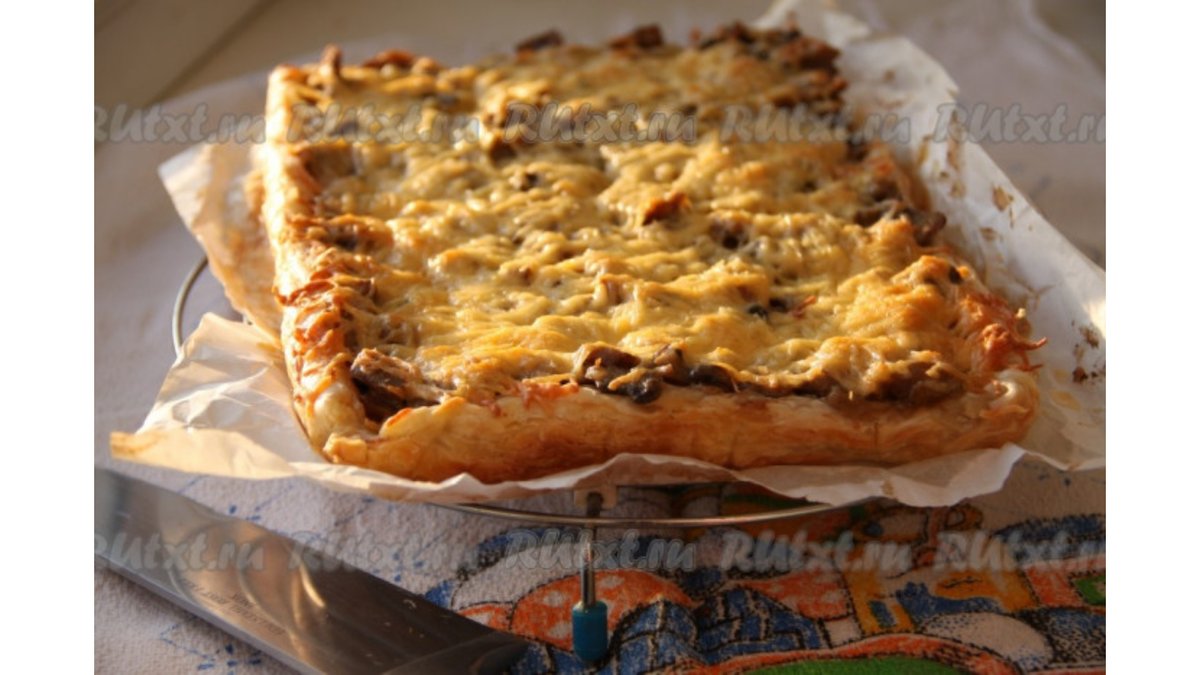 Слоёный пирог с телятиной и грибами