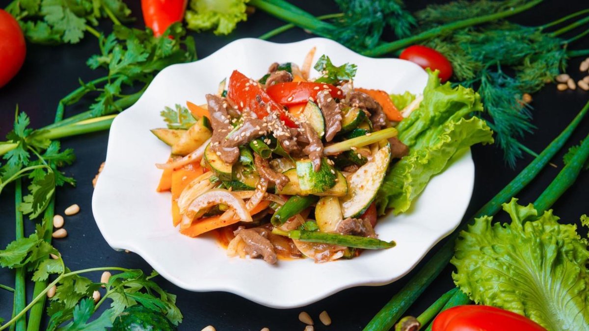Требуха жареная с овощами