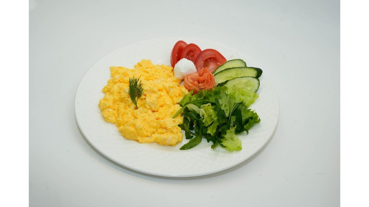 Скрембл, Лосось, Микс Салат, Сливки, Черри И Крем Чиз
