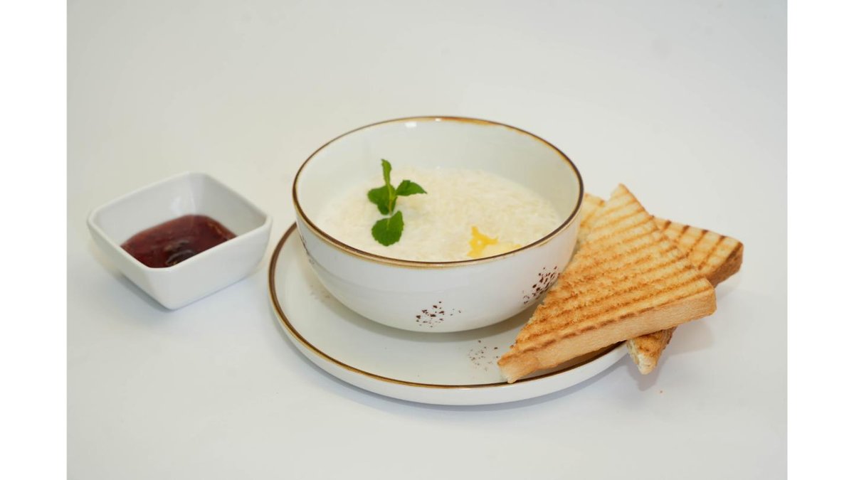 Рис, Молоко, Сахар, Соль, Масло Сливочное. Подается С Джемом И Хлебом