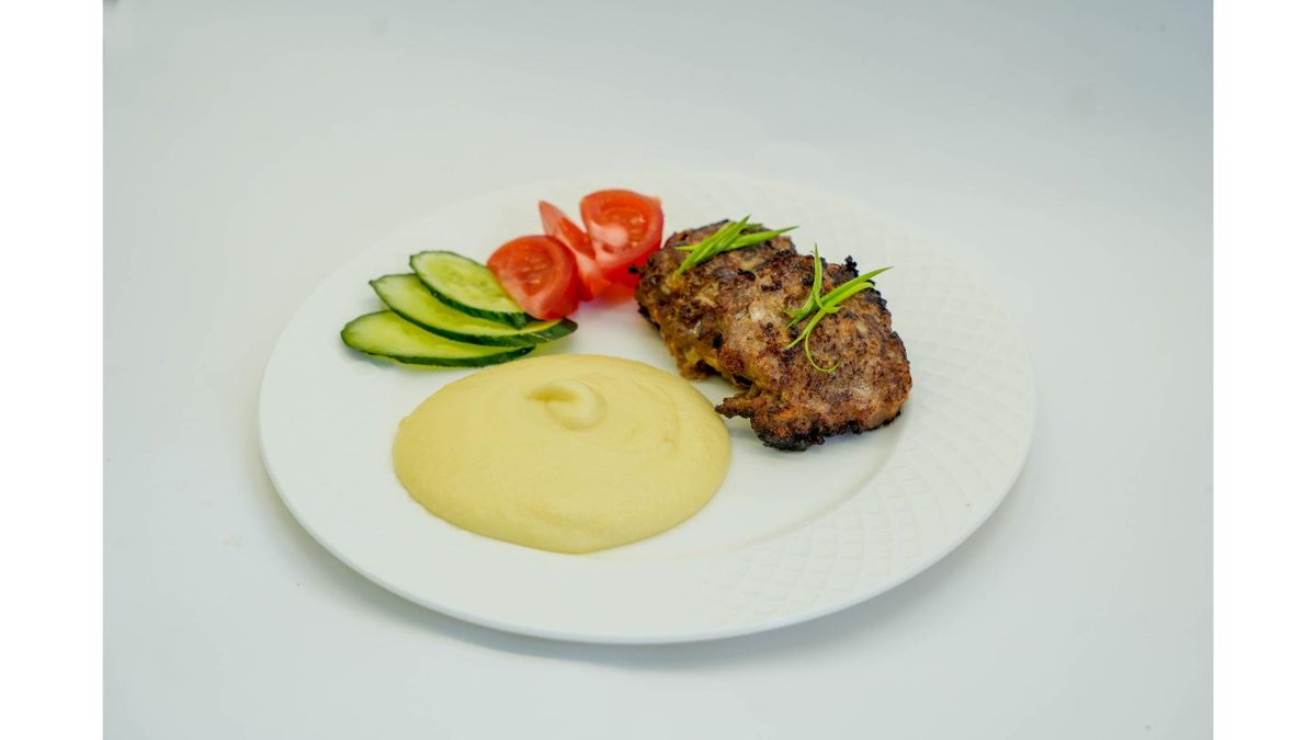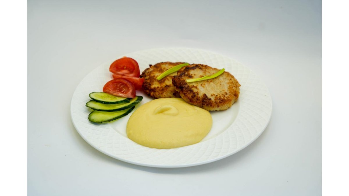 Два Куриных Котлет, Огурец, Помидор. Подается С (рис, Пюре Карт.)