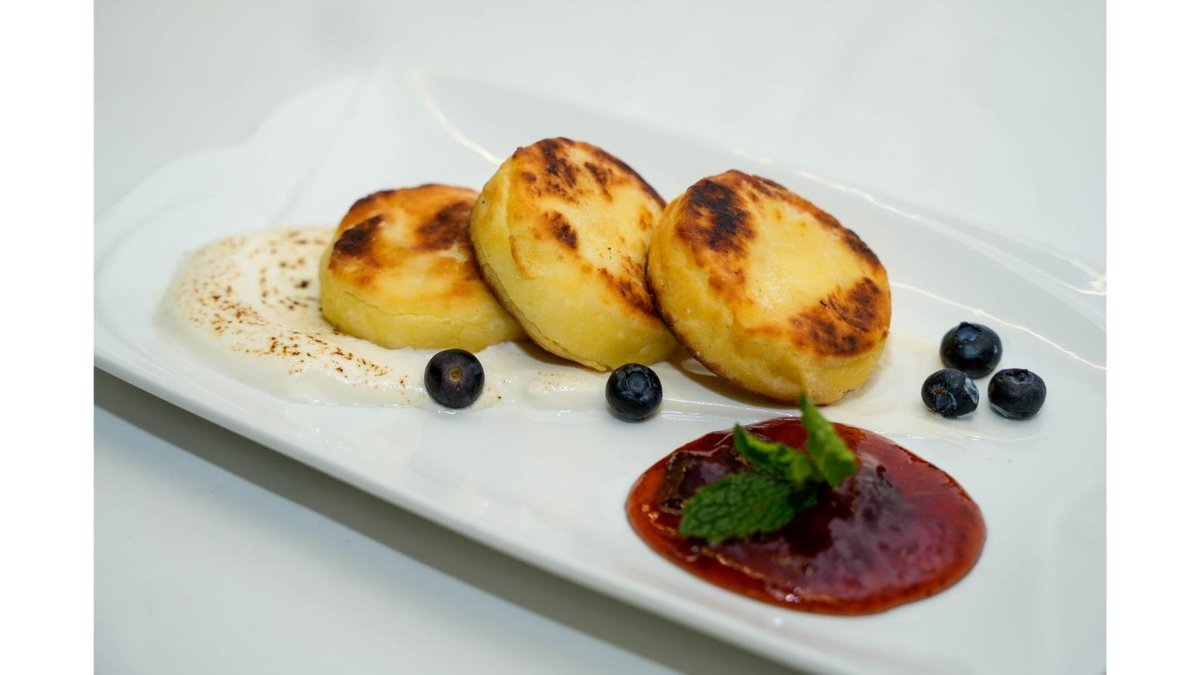 Форма Круглая, Приплюснутая, Поверность Равномерно Зарумянена, Без Трещин; Сырники Политы Сметаной Или Посыпаны Сахаром