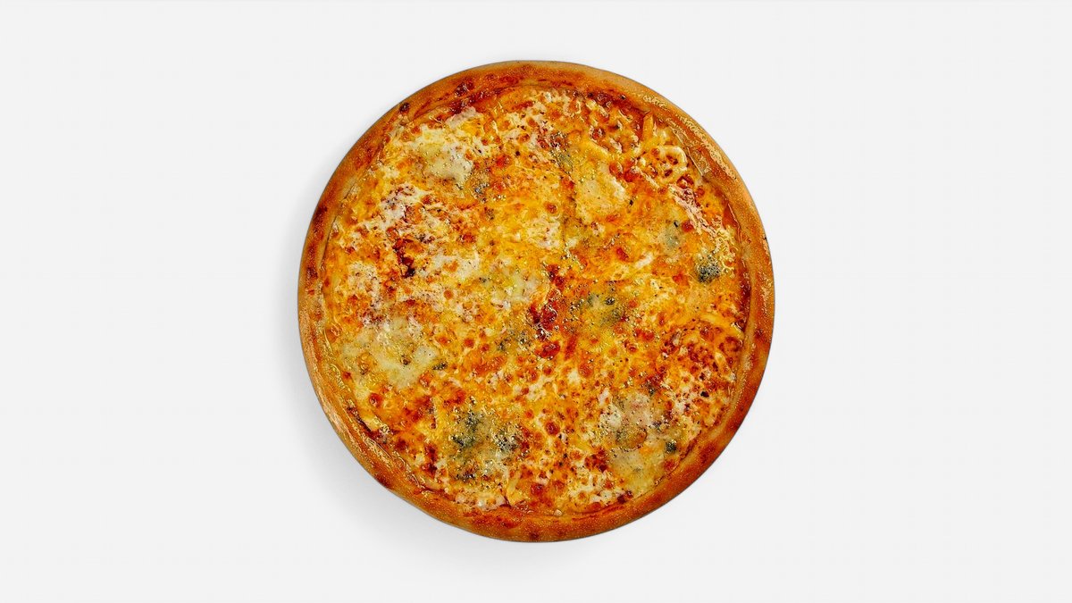 Дрожжевое тесто, сливки, сыр моцарелла, сыр сулугуни, сыр блу-чиз, пармезан. Размер 32см