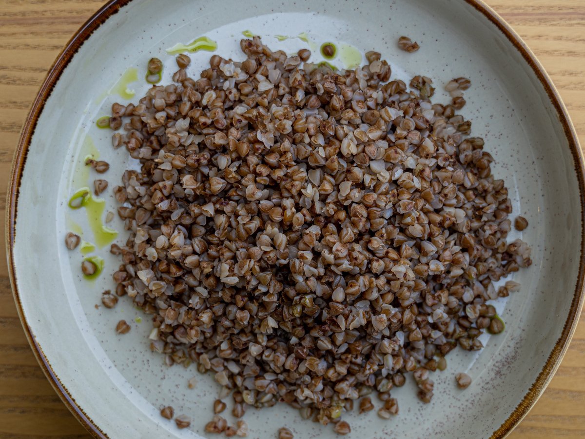 Каша пшеная с карамельным яблоком и ягодным конфитюром