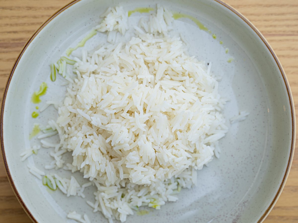 Рисовая каша на основе молока и сливочного масла с добавлением карамельного яблоко ягодного конфитюра и микро-зелени