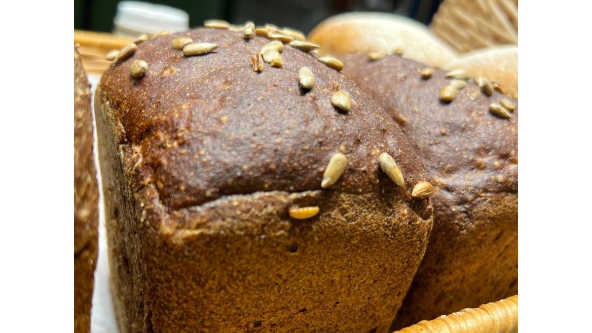 Солодовый хлеб в сочетании нежным сыром страчателлой ,семги "Гравлакс",вяленые черри,микс салата