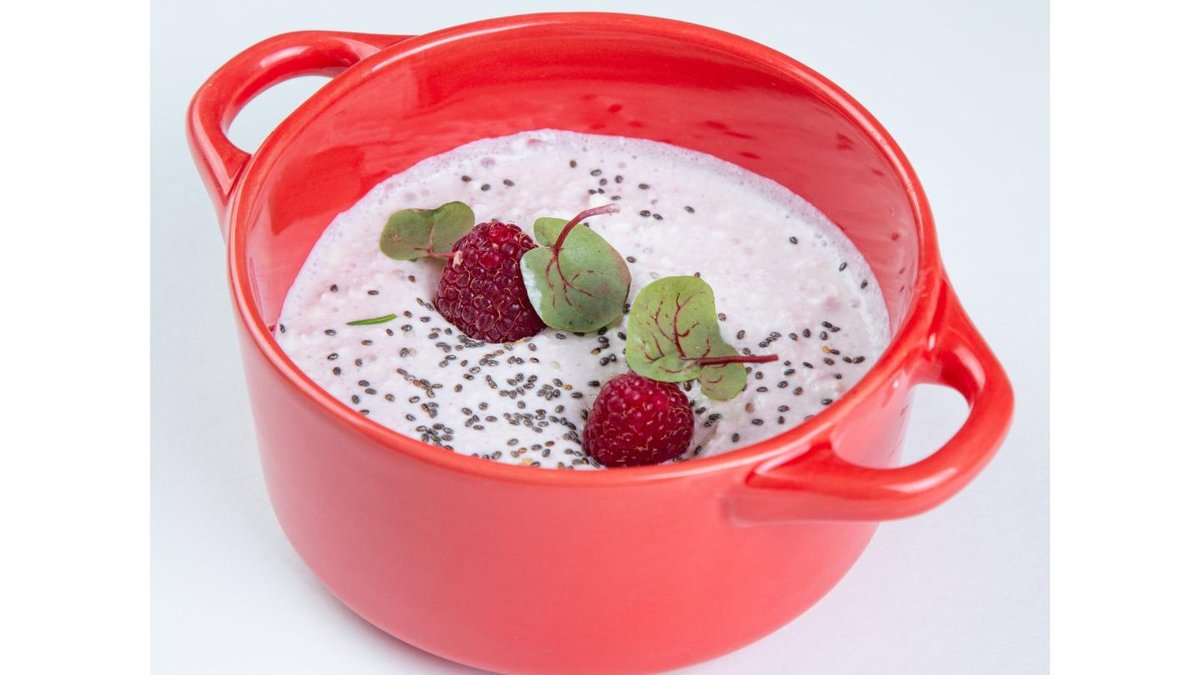 Творог,ягодный джем,сметана ,клубника ,мята,семена чиа