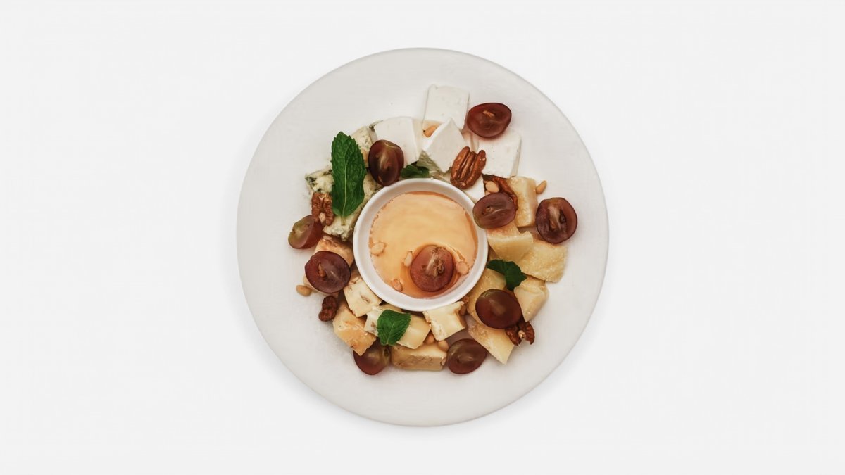 Пармезан, бри, горгонзола, качокавалло, мед, кедровый орех, грецкий орех, виноград.
