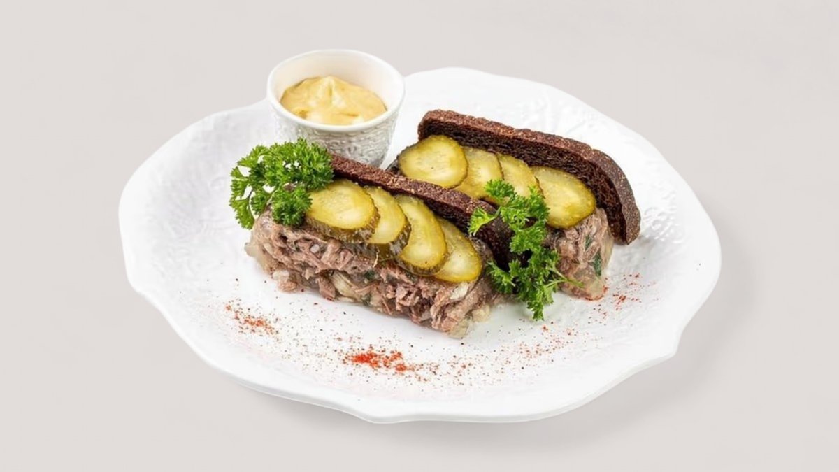 Фирменный холодец на богатом, ароматном бульоне, с нежными кусочками конины. Чистый вкус, плотная текстура и настоящий традиционный уют в каждой ложке
