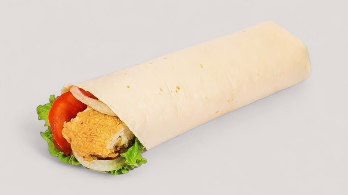 Пшеничная тортилья, сочные стрипсы, майонез, помидор.
