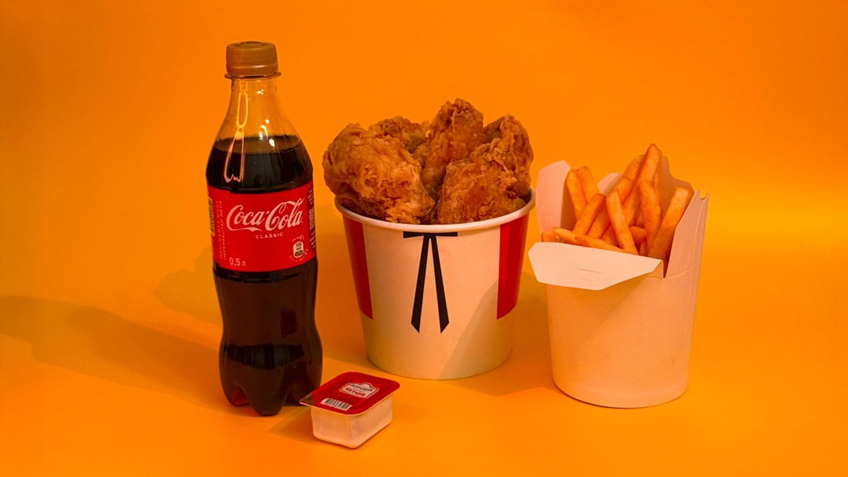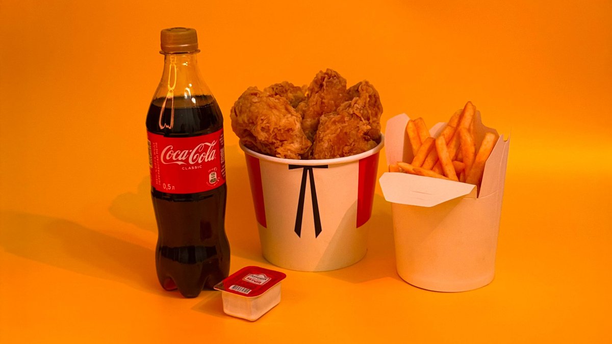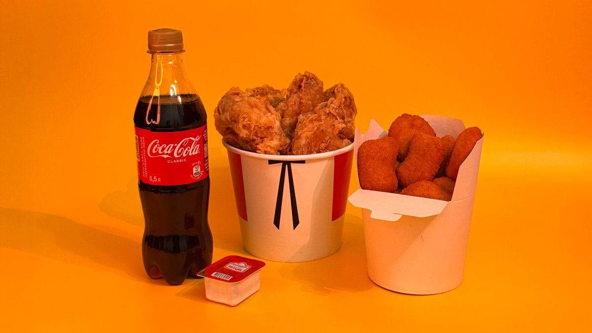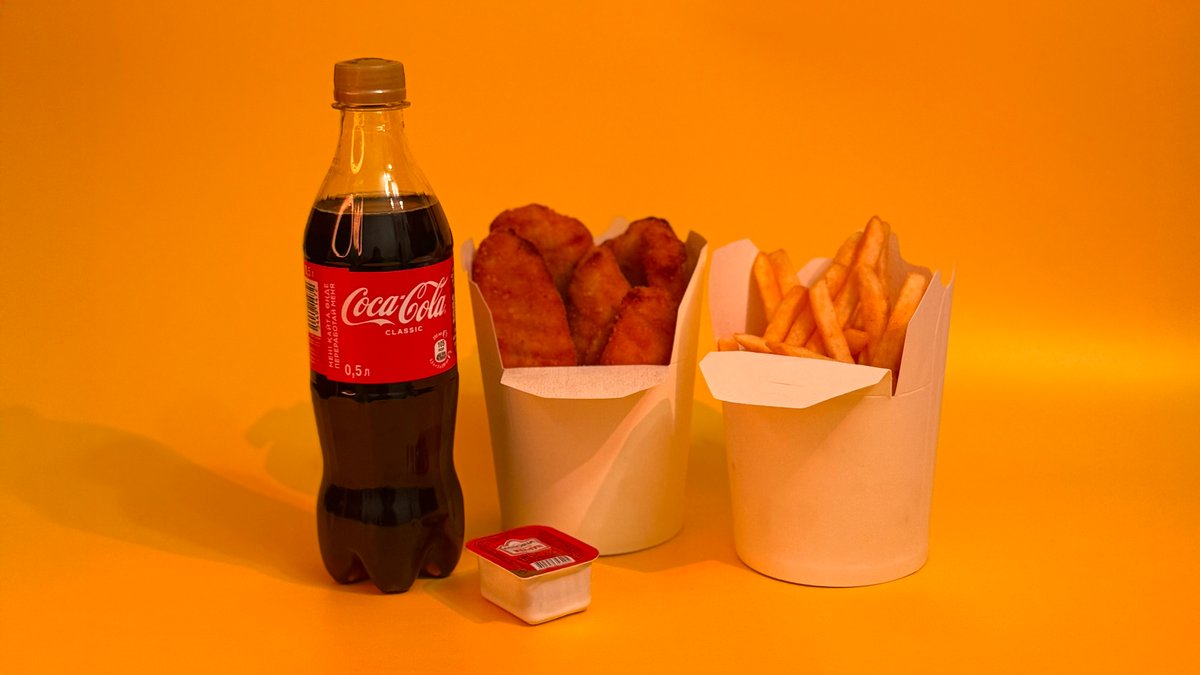 Крылья 12 шт, Наггетсы 8 шт, Соус 1, Кола 0,5 л