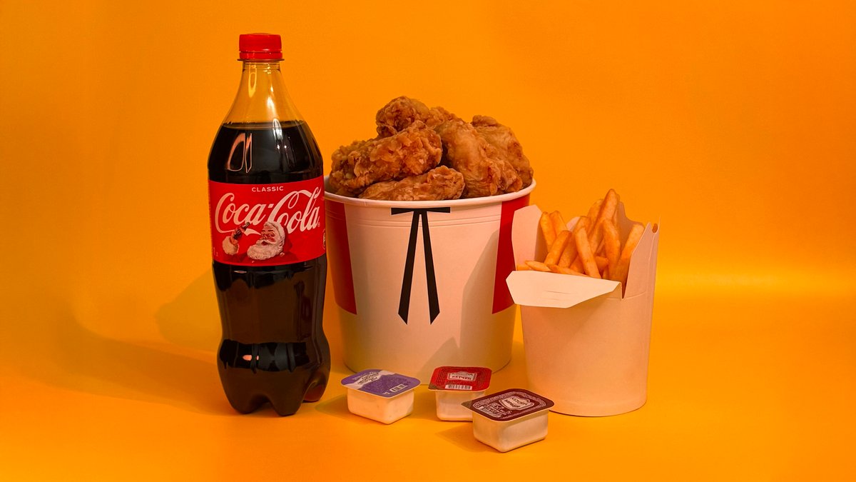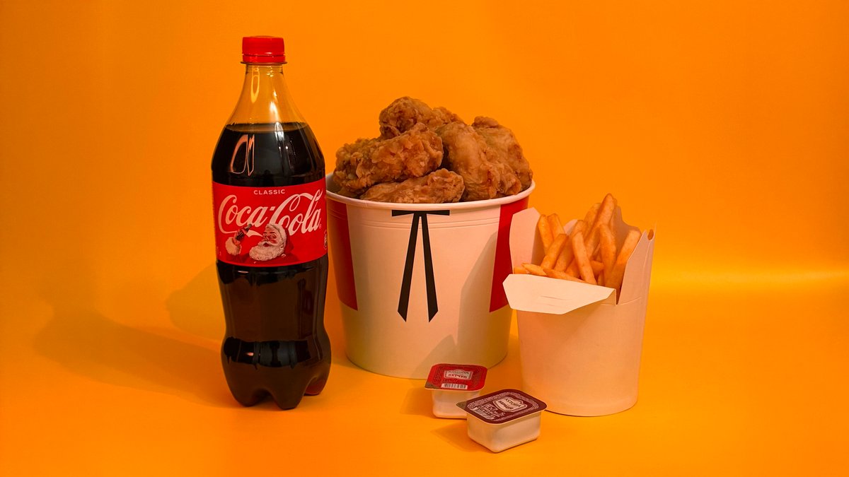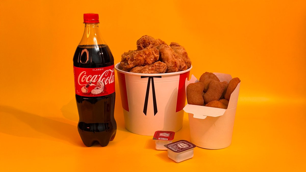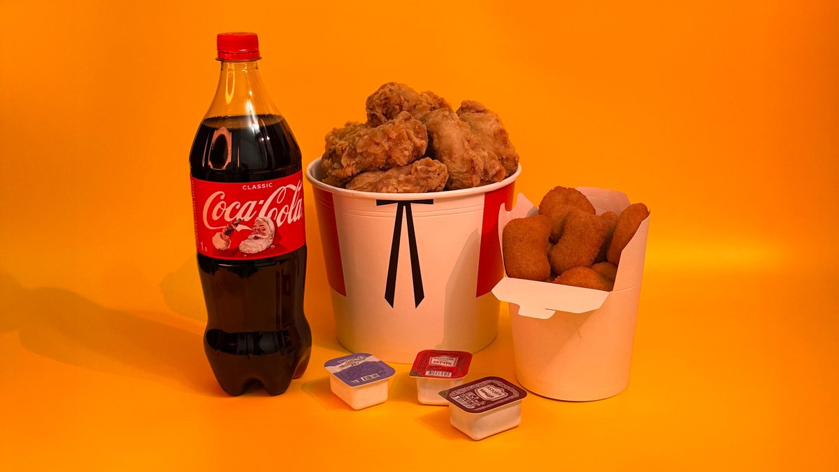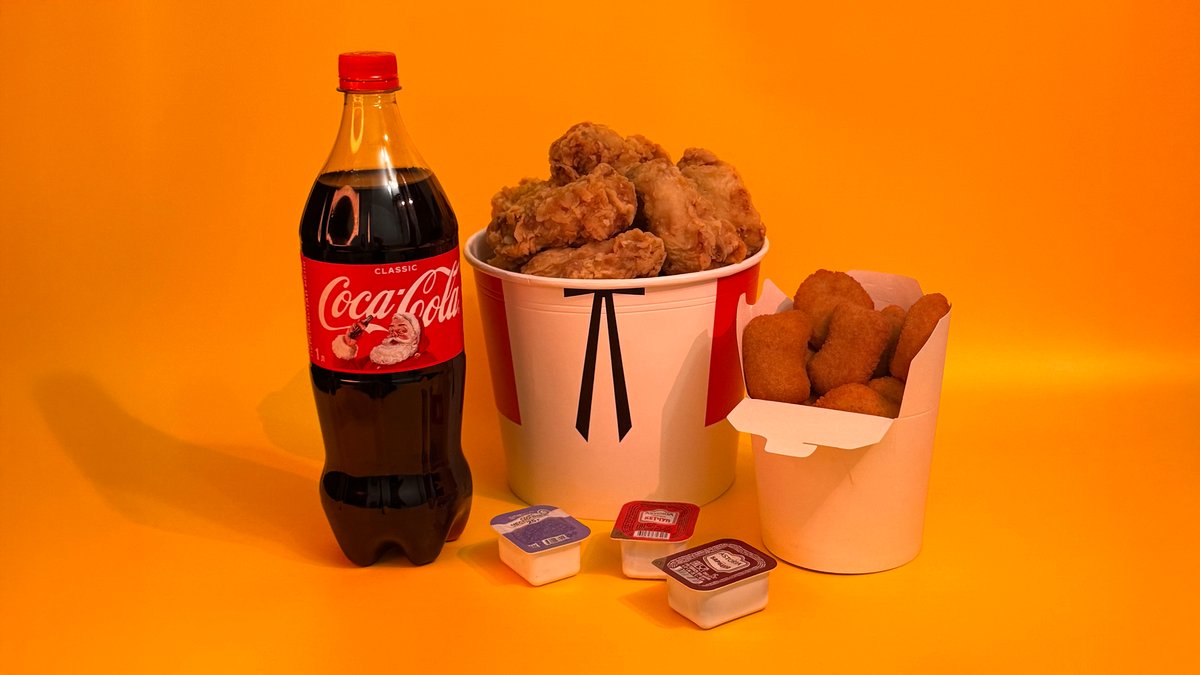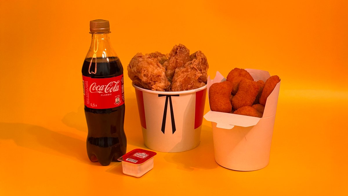 Крылья 16 шт, Наггетсы 8 шт, Соус 2 шт, Кола 1 л