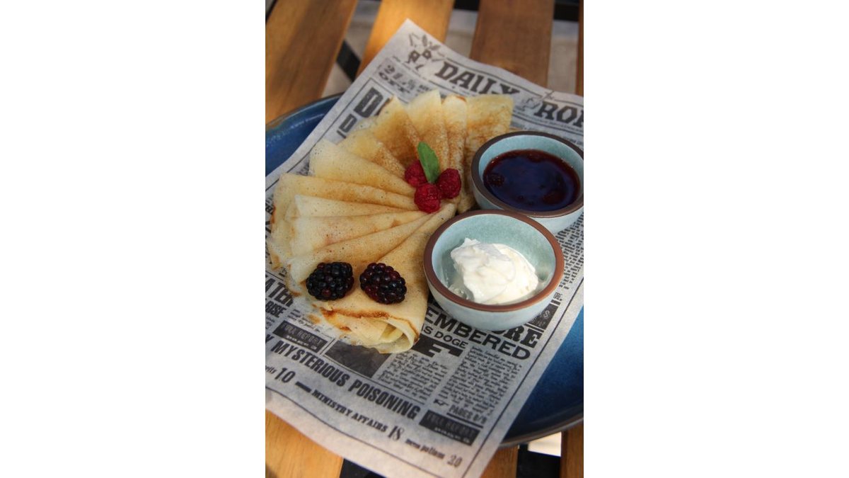 классические блины со сметаной и ягодным джемом