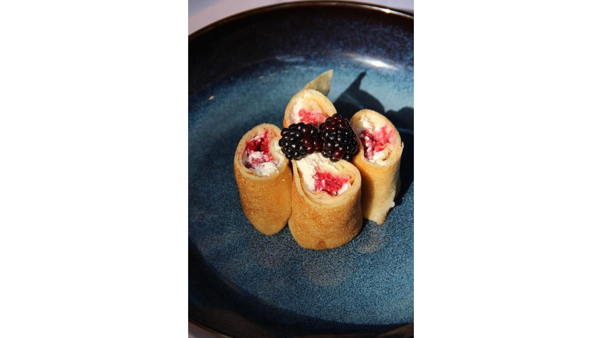 блины с творогом и ягодной начинкой.