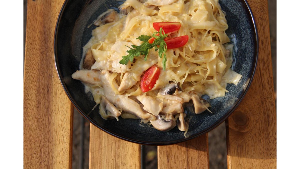 Паста в сливочном соусе с курицей грибами