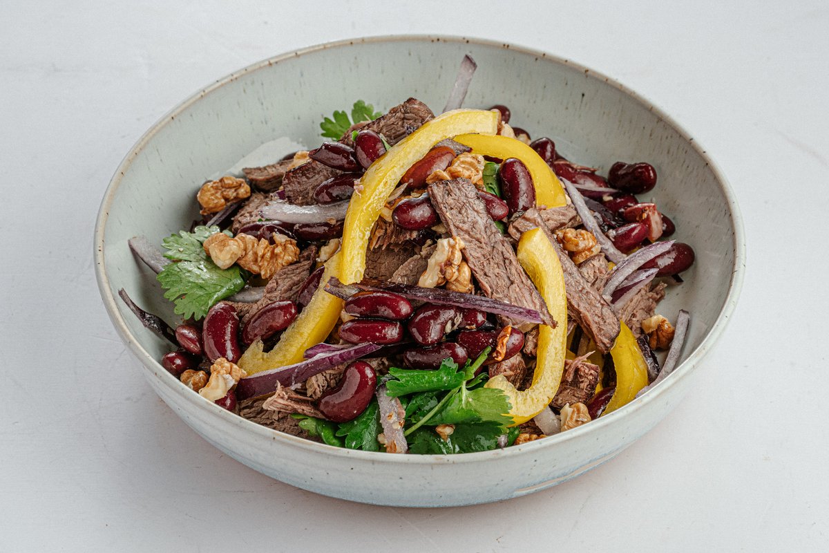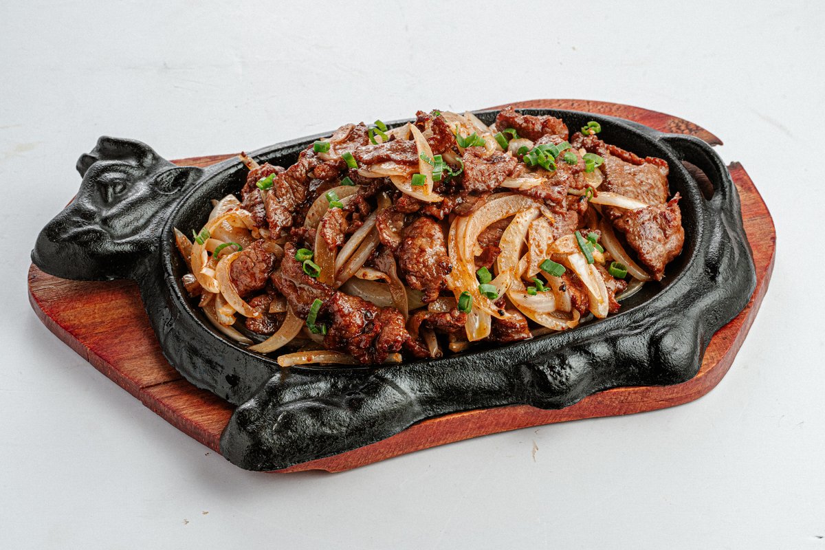 Крахмальная лапша, с нежной телятиной и овощами. С приправами из маринованного перца