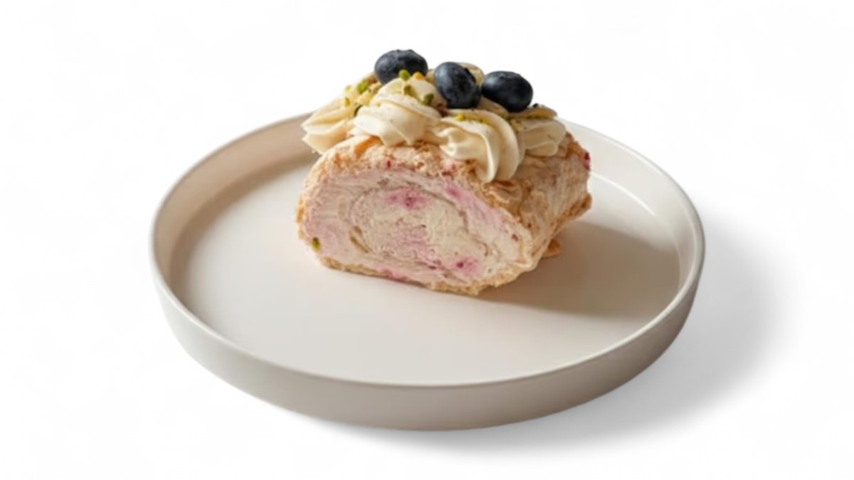 Нежный меренговый рулет с хрустящей корочкой и мягкой, тающей серединкой. Внутри — воздушный сливочный крем и сочная малина, которая придаёт лёгкую кислинку и идеально балансирует сладость меренги. Лёгкий, ароматный и очень нежный десерт.