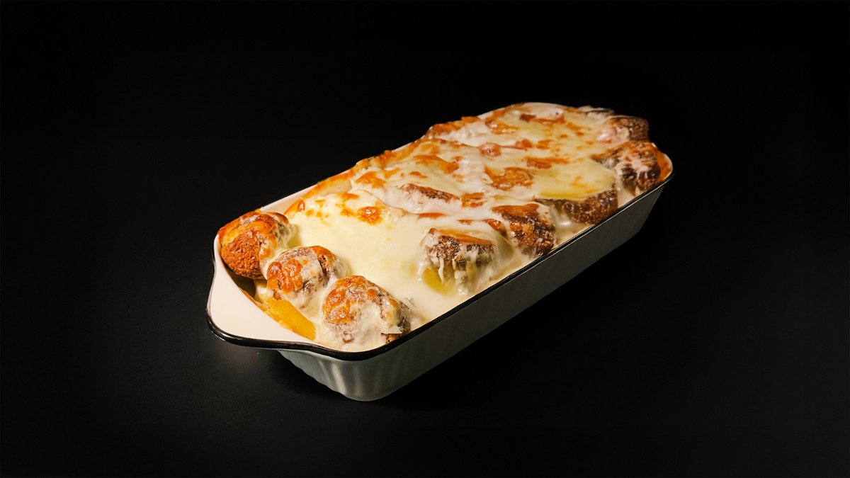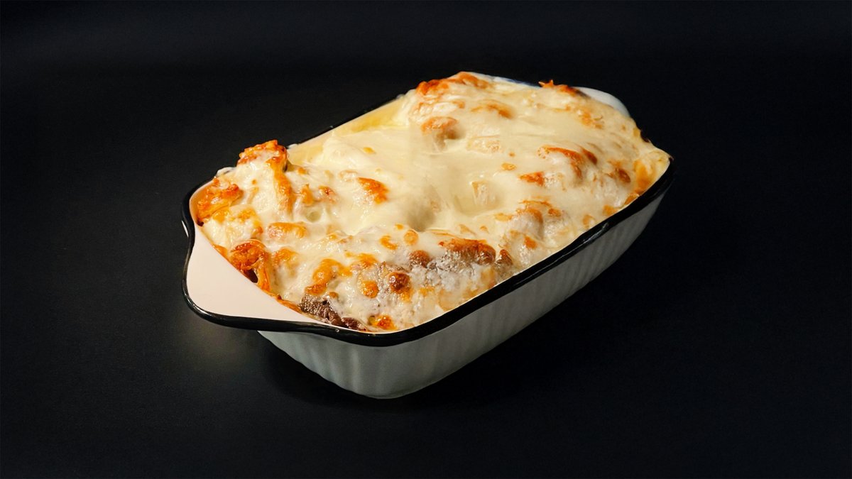 DÖNER запечённый говяжий. Макароны, дöнерное говяжье мясо, красный лук, соус айоли, сыр моцарелла и специи.
