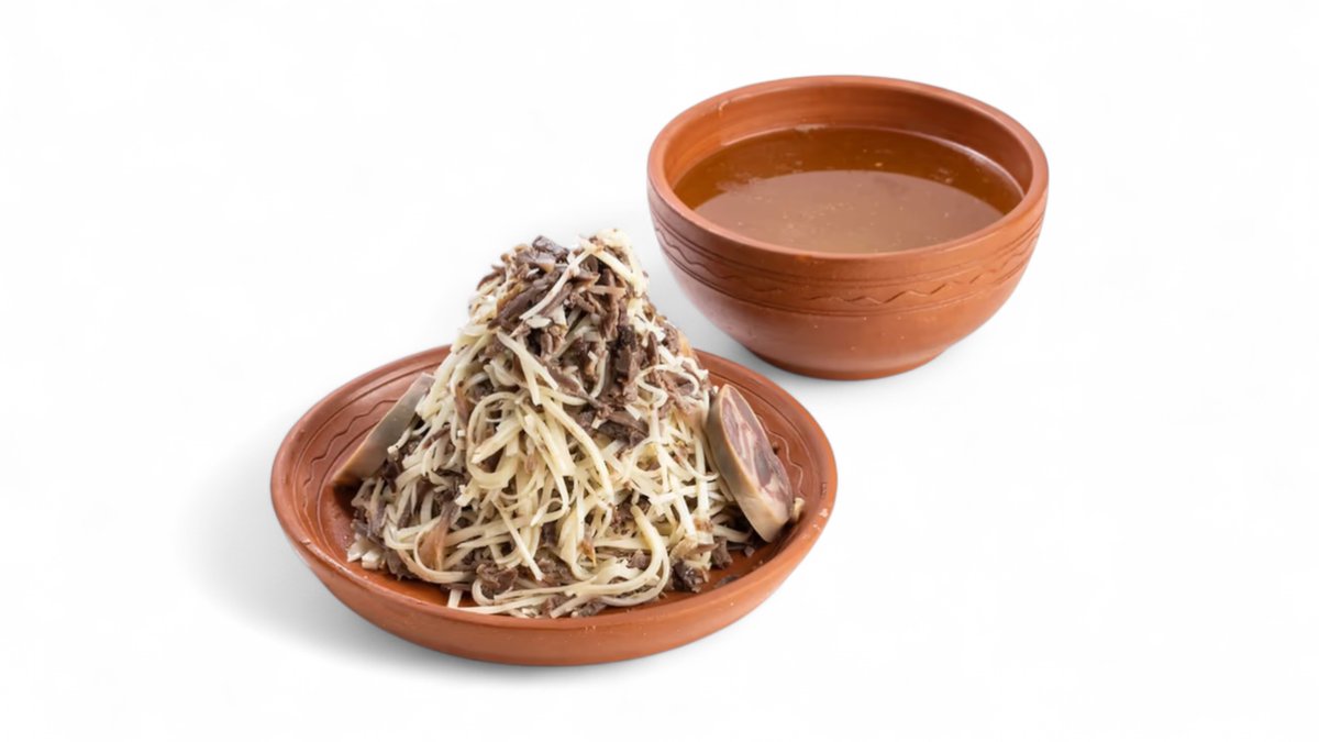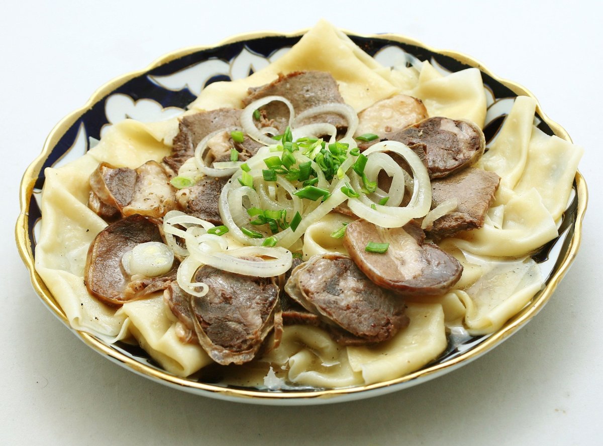 Традиционное блюдо из мелко нарезанного теста и конины с бульоном