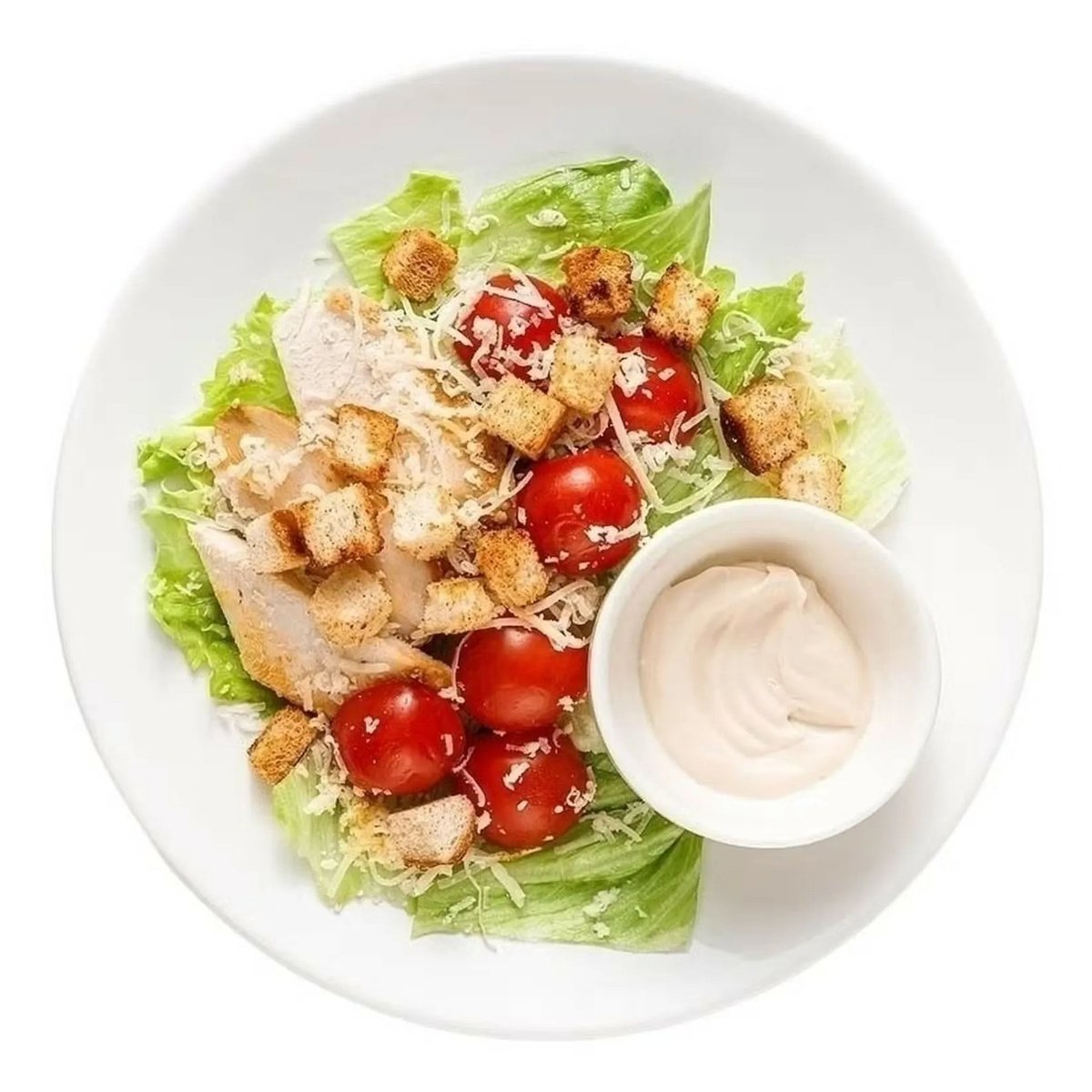 Классический салат с курицей, сухариками, сыром пармезан и соусом цезарь