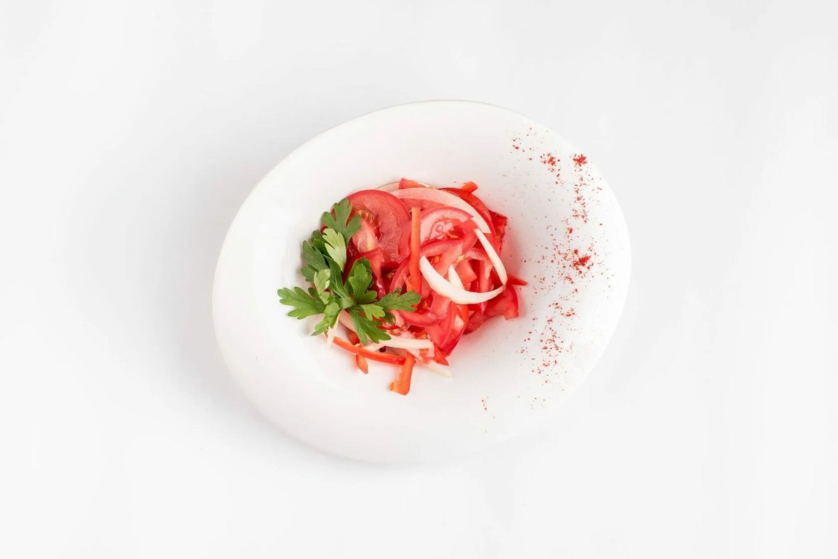 Свежий салат из помидоров, лука и острого перца