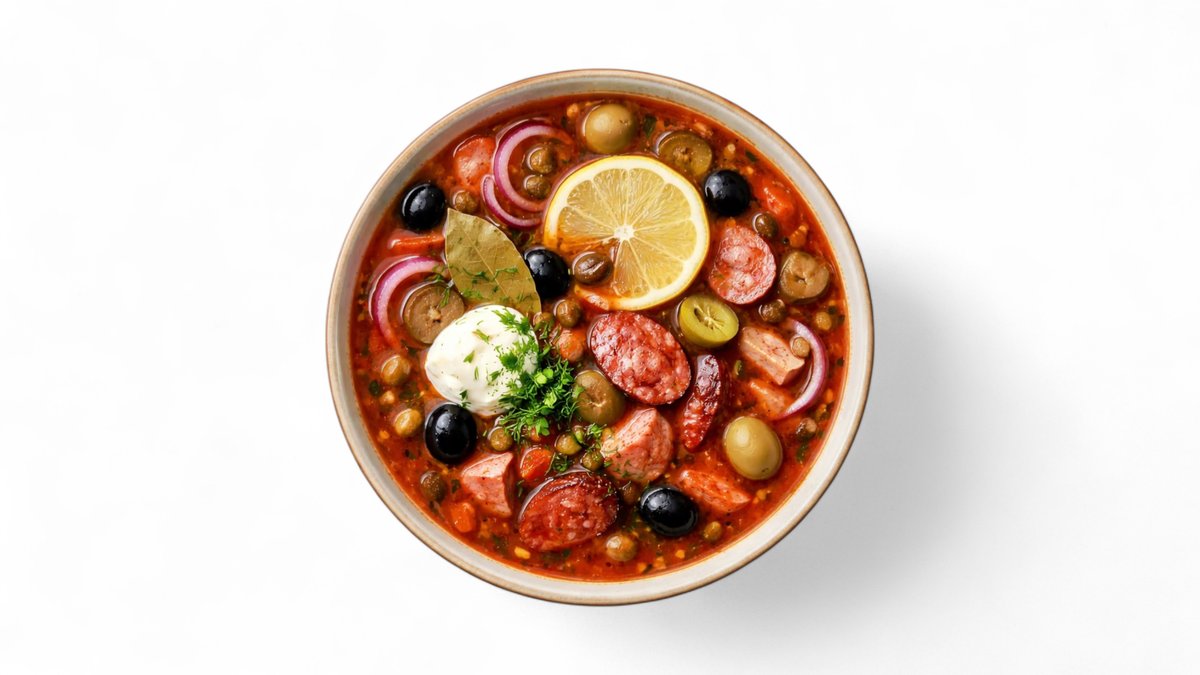 Густая, наваристая солянка с ассорти мясных деликатесов, солёными огурцами и лёгкой кислинкой. Подаётся горячей, с насыщенным бульоном и ярким вкусом. Сытно, по-домашнему и без компромиссов.