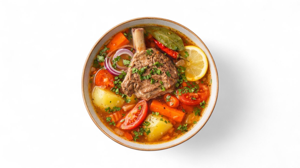 Насыщенный бульон с сочной бараниной, крупными овощами и ароматными специями. Густая, сытная и по-настоящему согревающая.