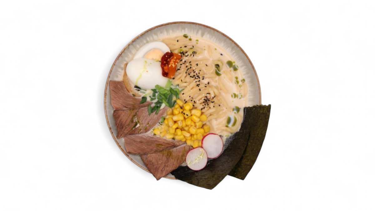 Погрузитесь в атмосферу паназиатской кухни! Основа нашего рамена — наваристый золотистый бульон, который томится несколько часов с добавлением имбиря и соевого соуса. Подается с упругой пшеничной лапшой, сочными слайсами обжаренного куриного филе и маринованным яйцом с нежным желтком. Завершают композицию хрустящие листы нори, свежий зеленый лук и ароматный кунжут.