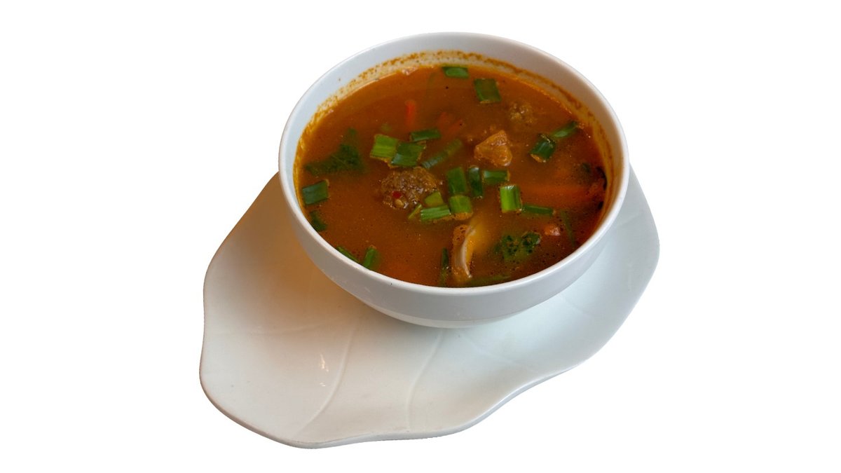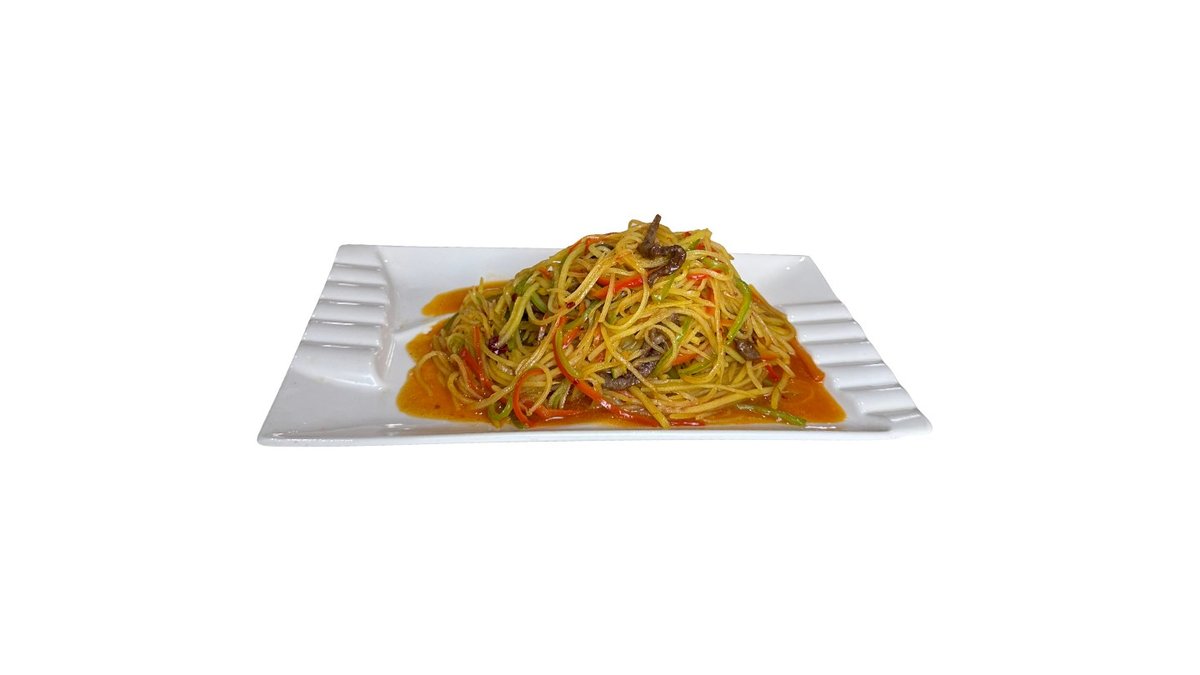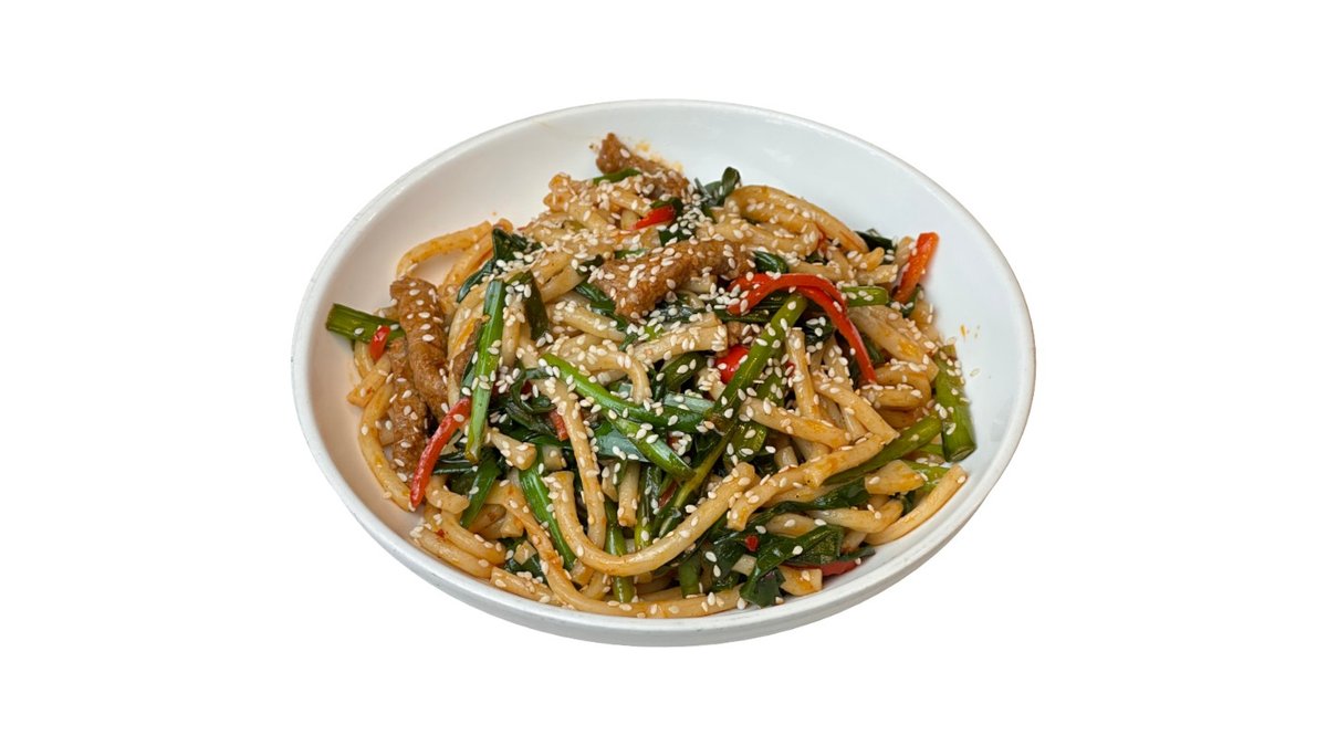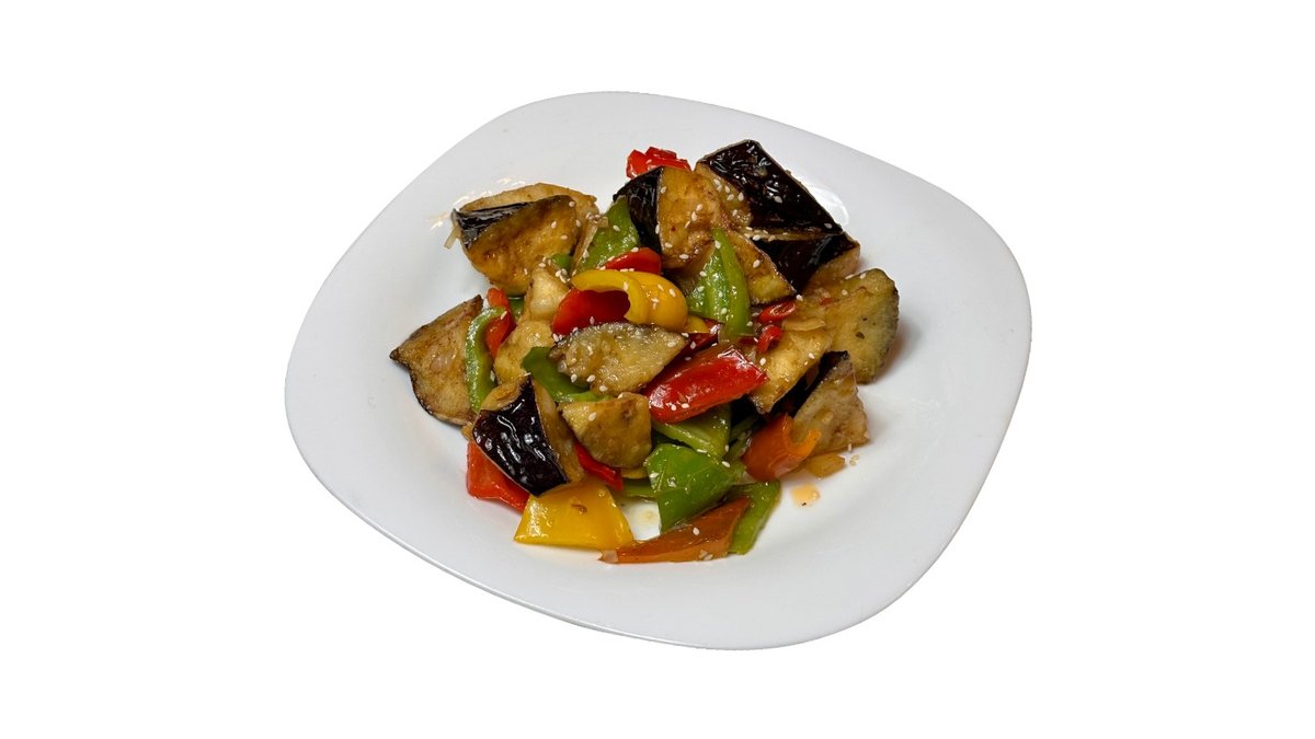 Баклажан, говядина, соевый соус, чесночное масло, кинза, микс салата, полугорький перец, красный лук